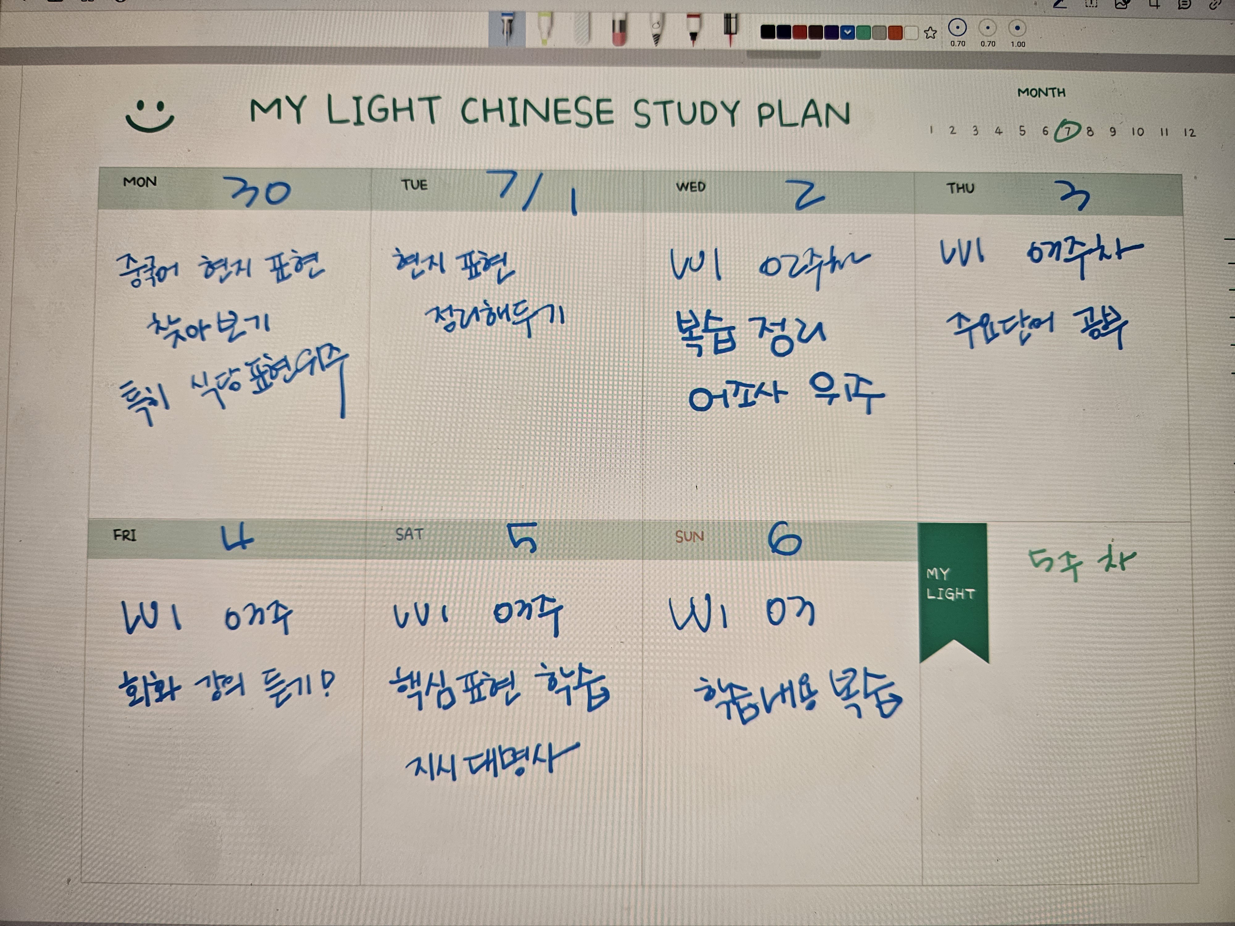 가벼운학습지 중국어 5주 차 주간 플랜 및 첫번재 학습 기록~!!!!