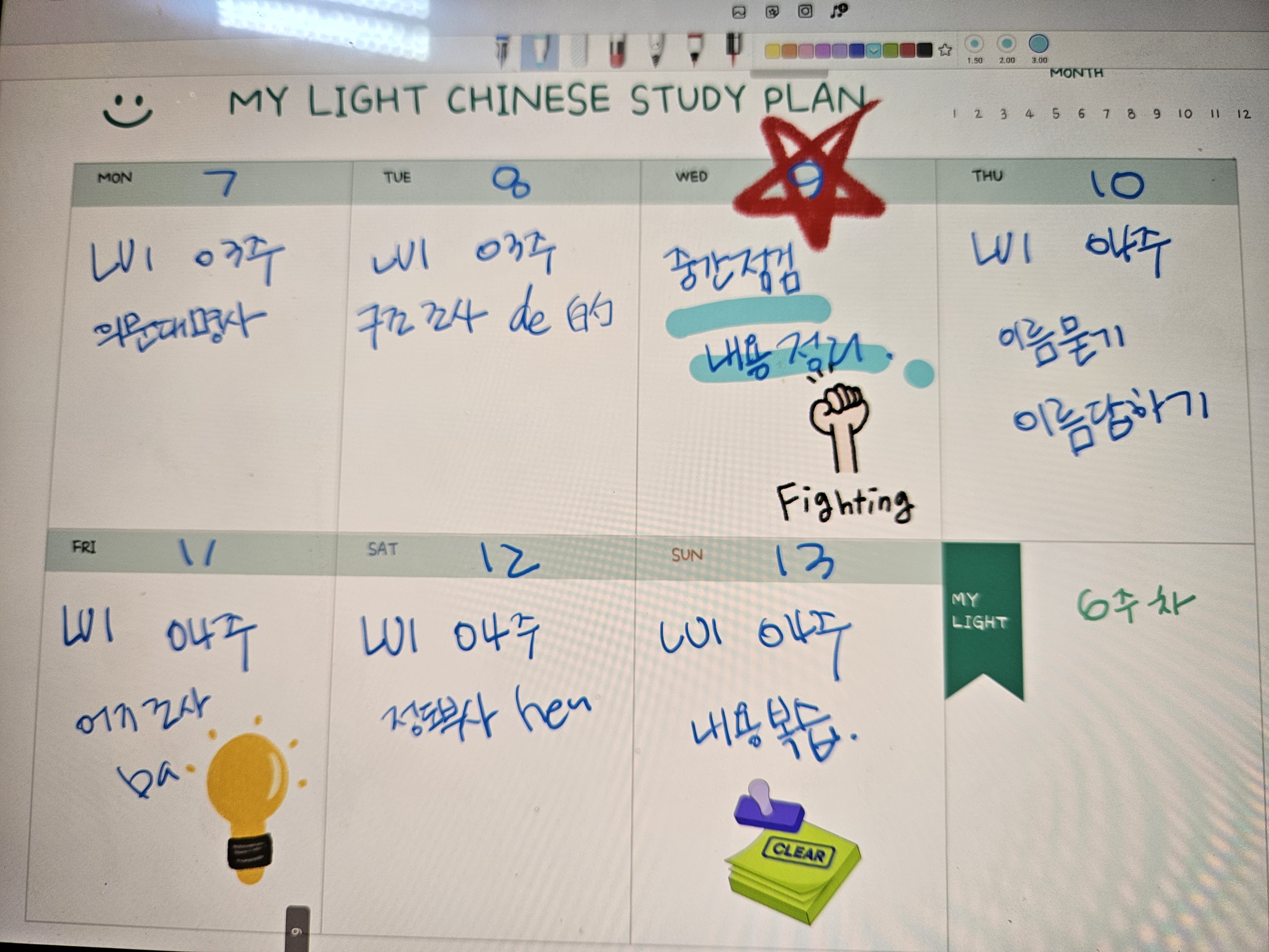 6주 차 주간 플랜 + 가벼운학습지 중국어 6주 차 첫번째 학습 기록