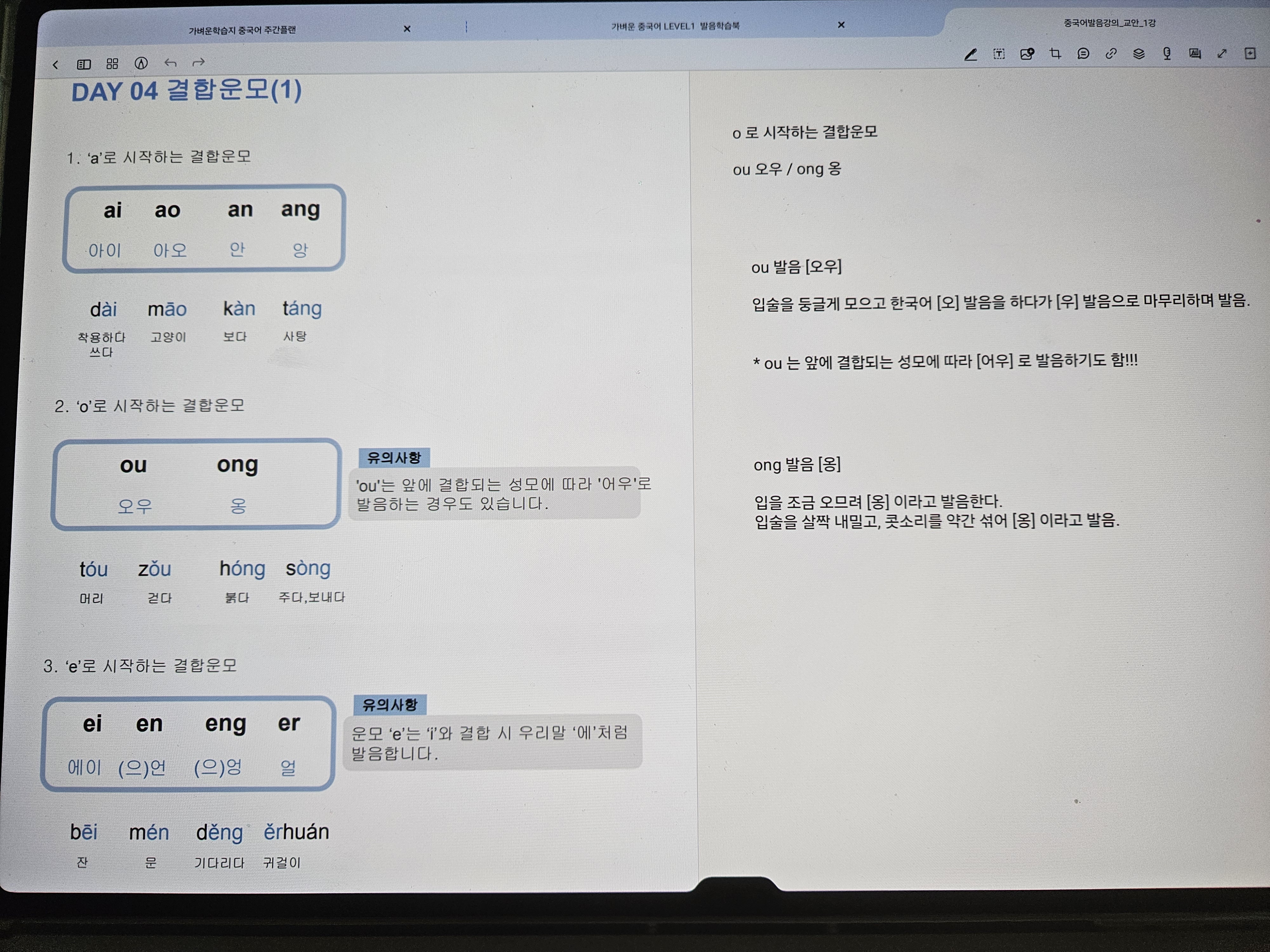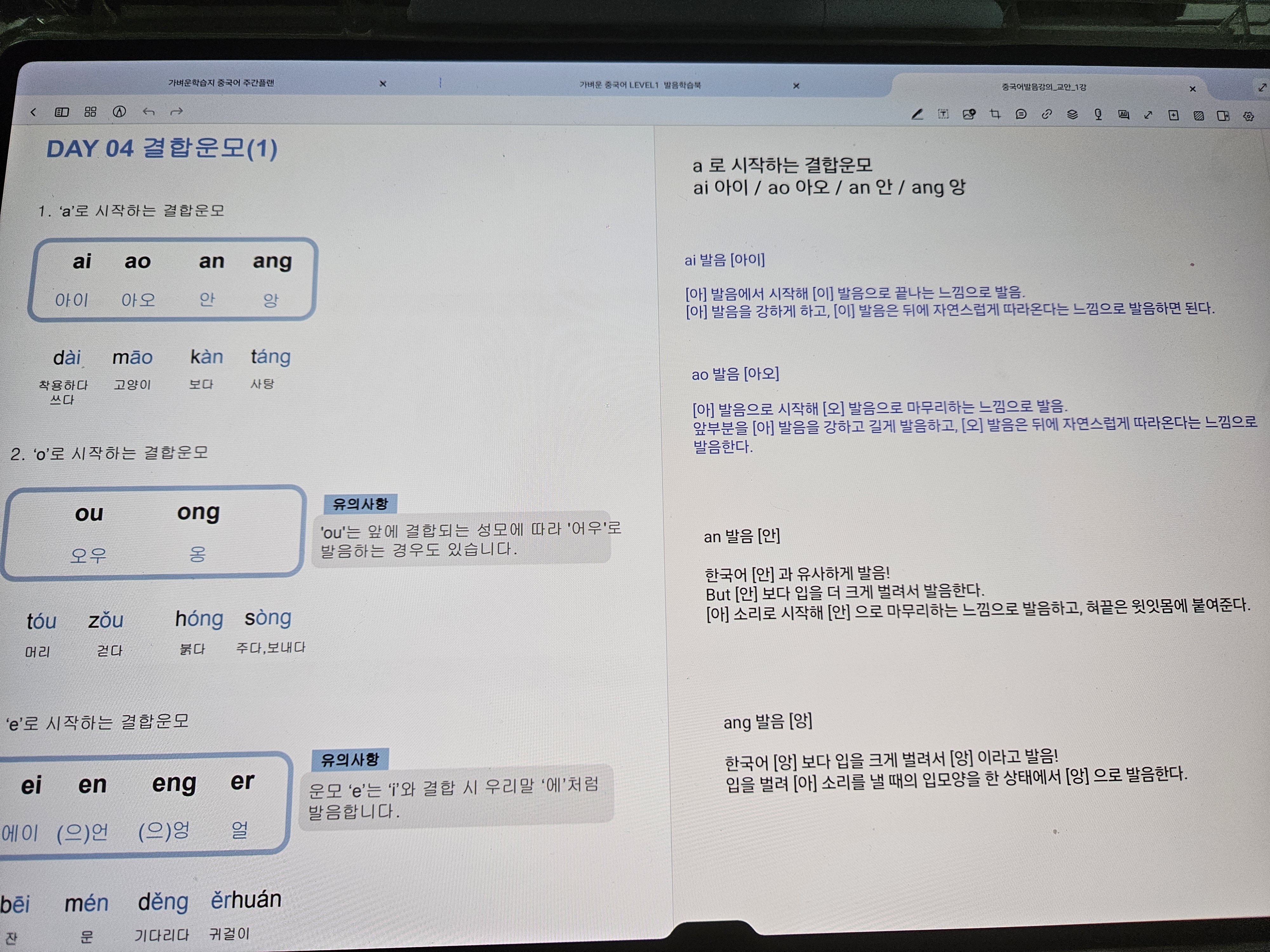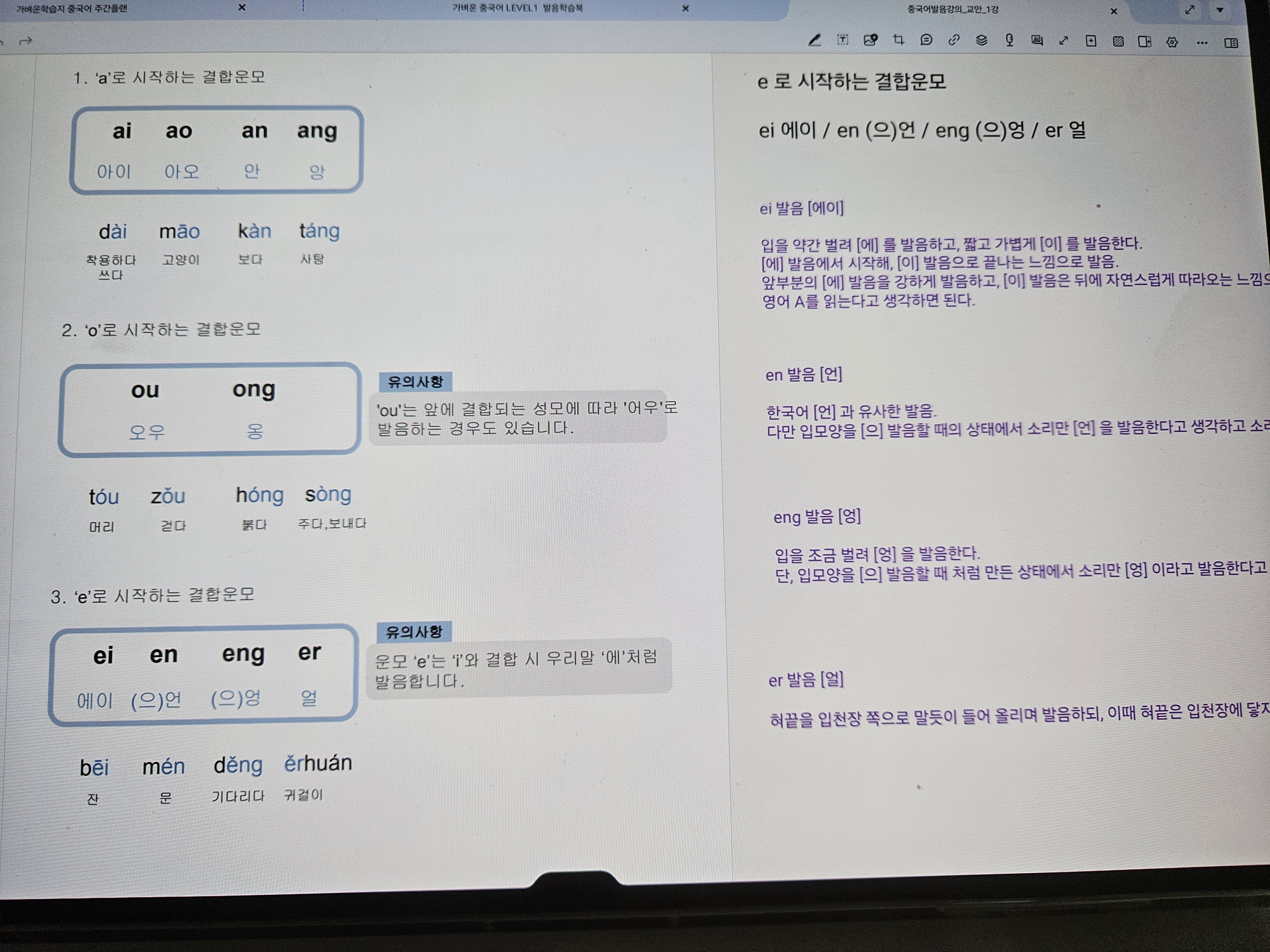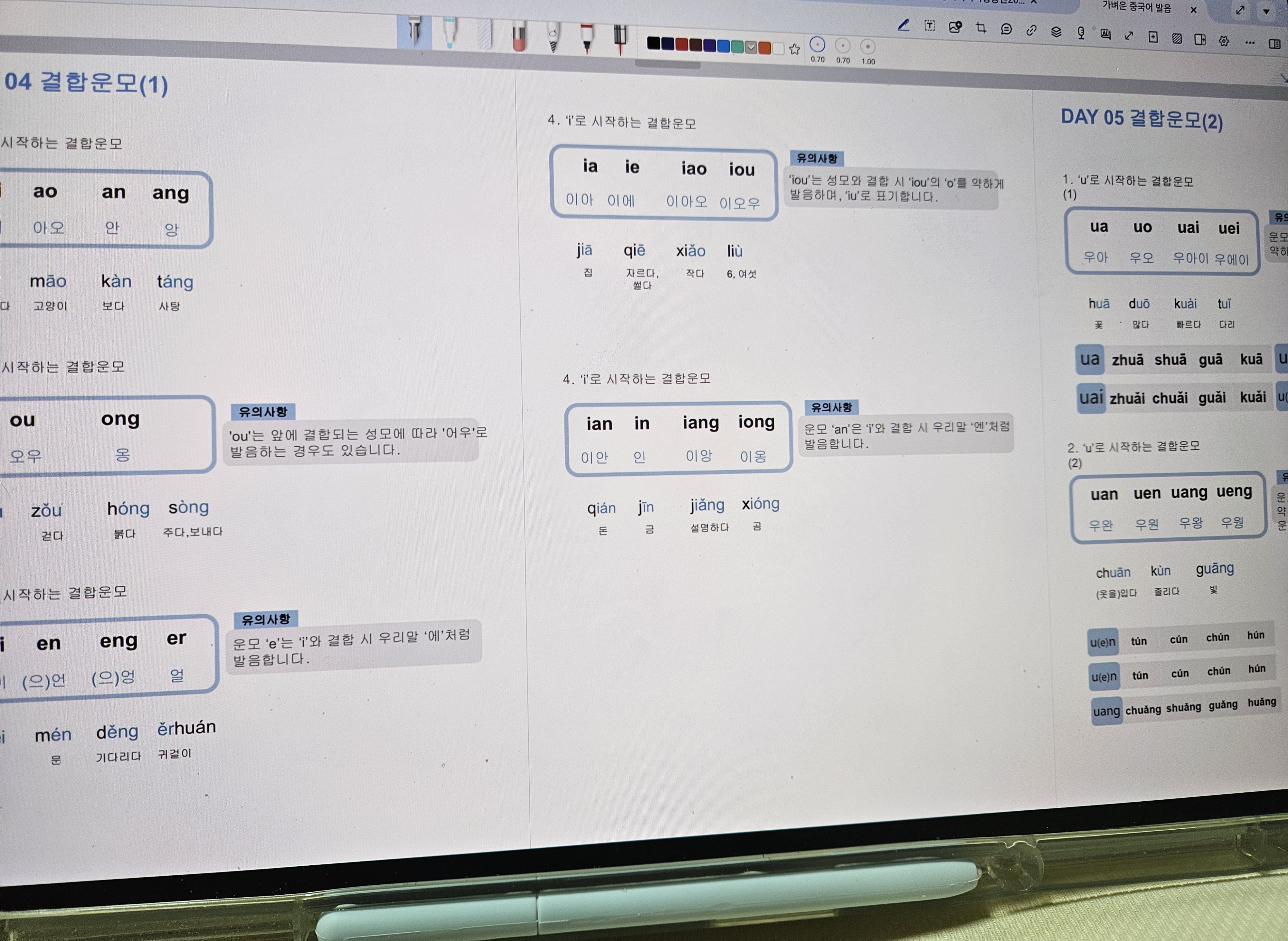 중국어 결합운모는 금방 공부할 때는 외운 것 같은데... 시간이 조금만 지나면 또 '뭐지?' 싶은 것들이 많다ㅠㅠ
