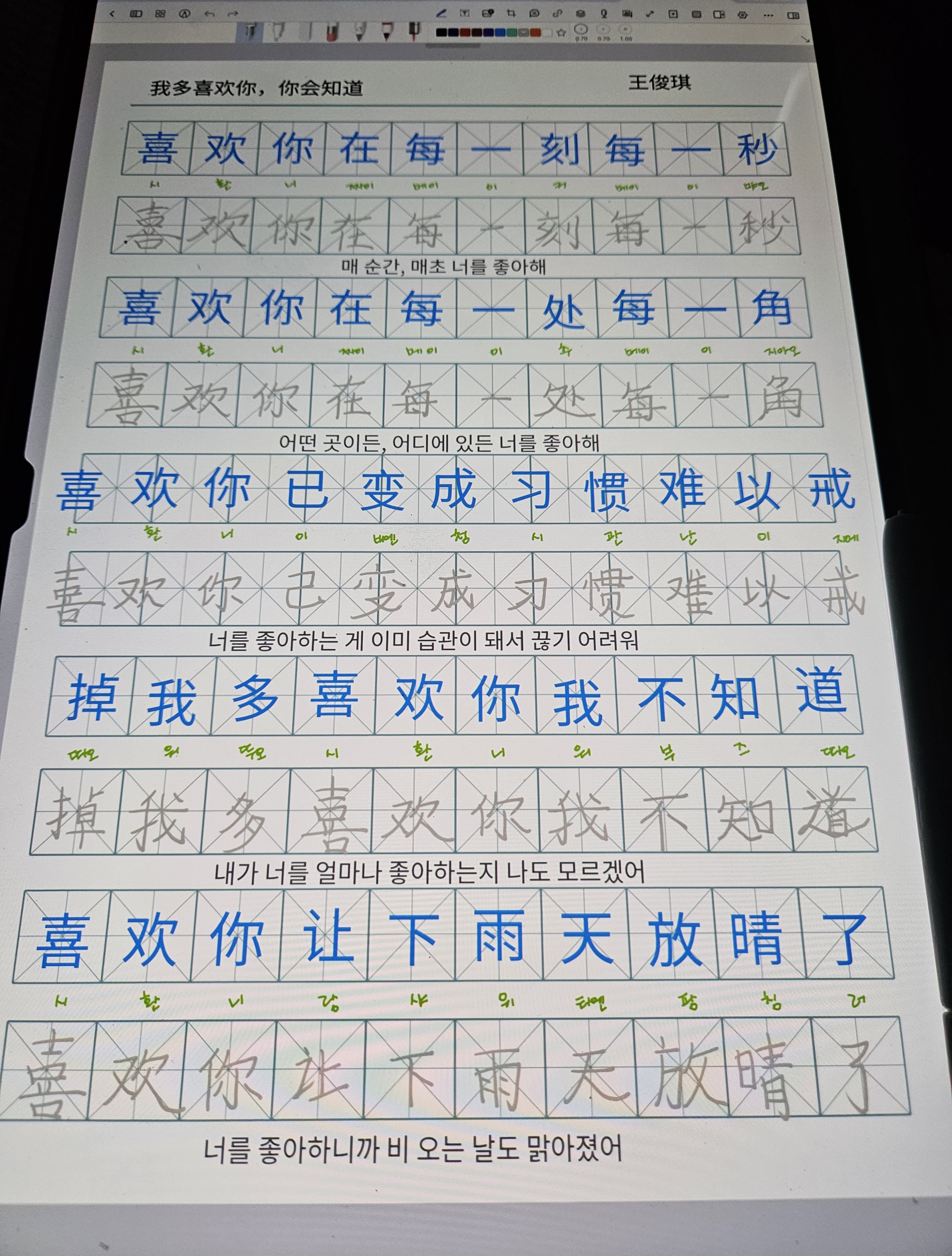 태블릿 노트 앱에 넣어두고 반복해서 썼다 지웠다 할 수 있어서 편하다.