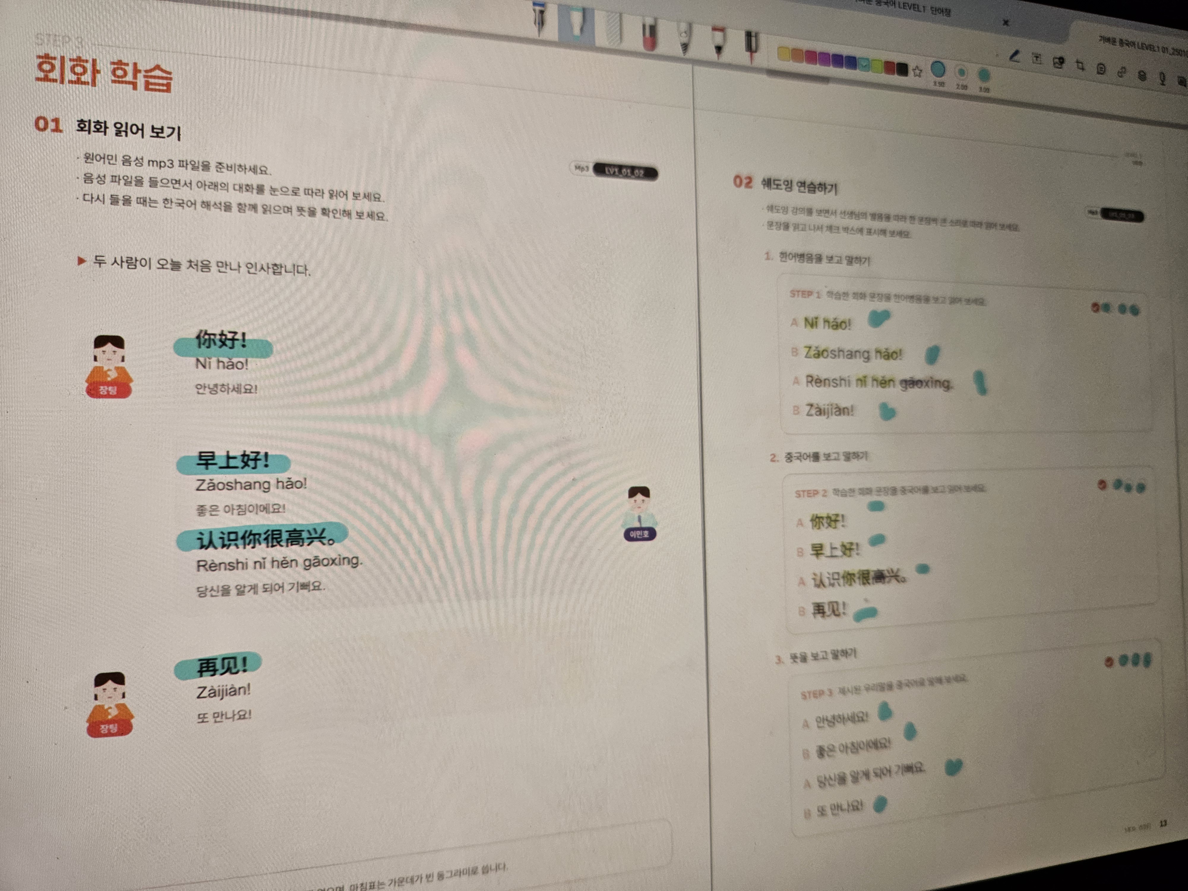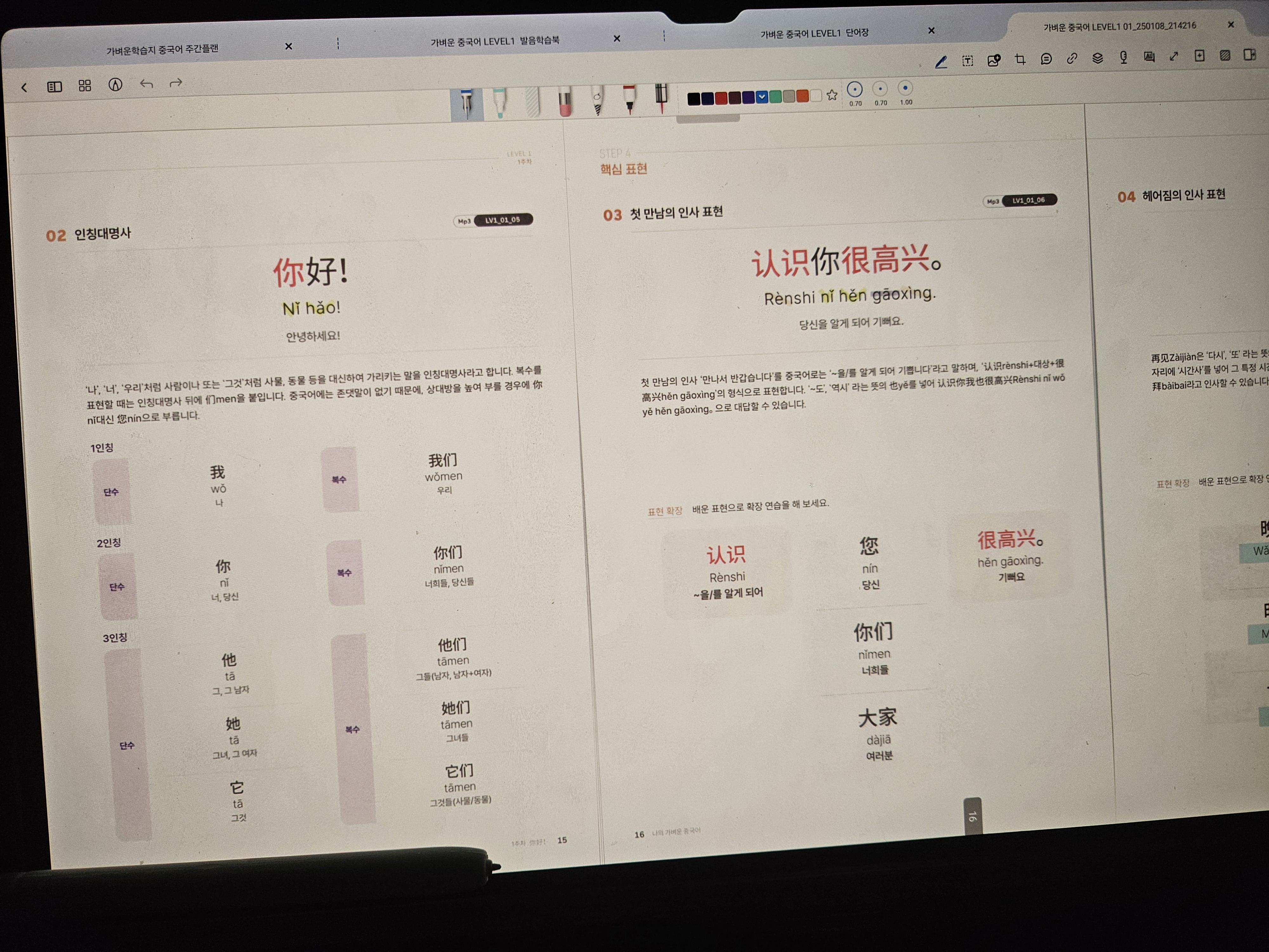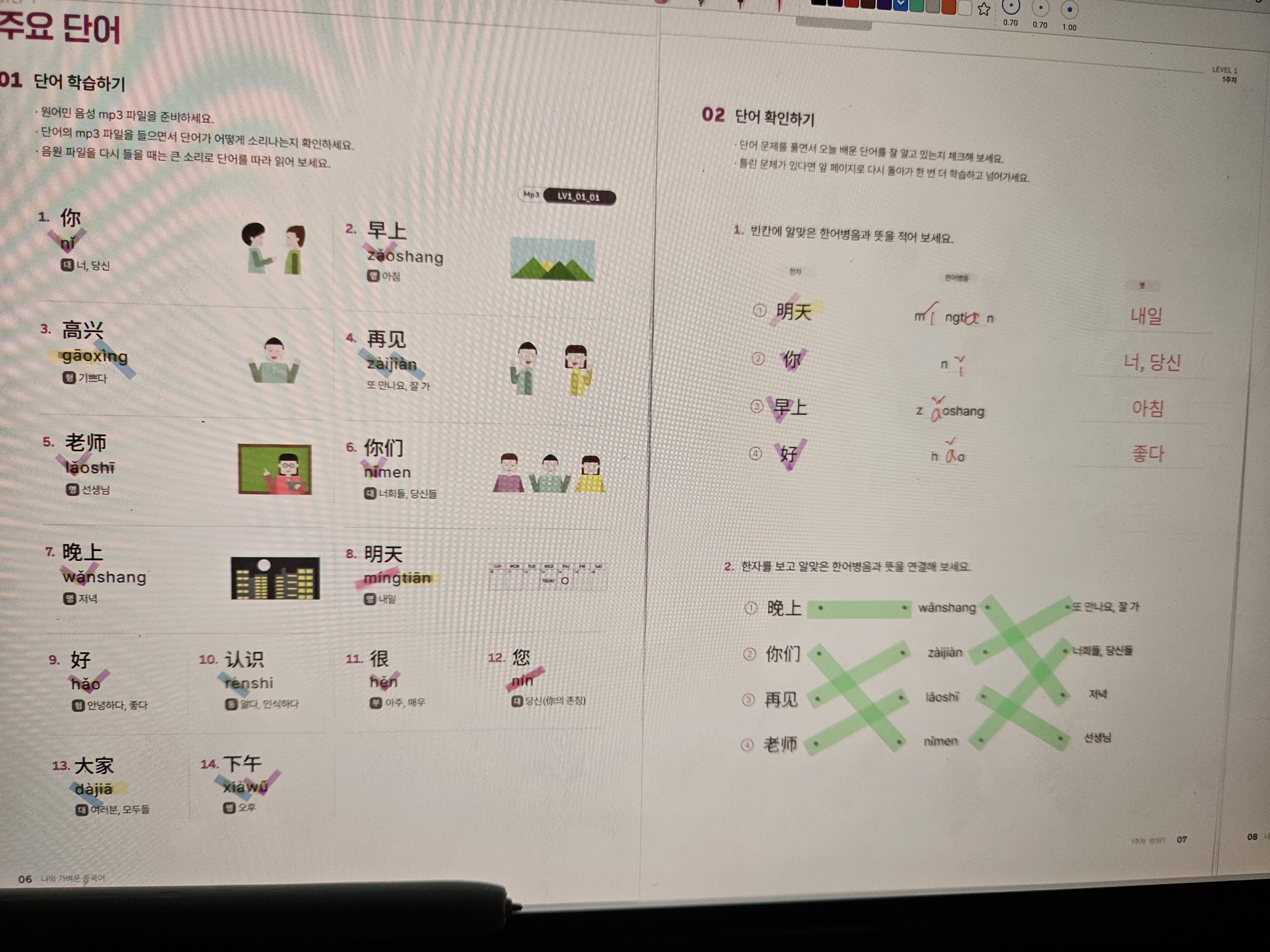 다른 외국어와 달리 중국어는 새로운 한자도 공부해야 하고, 단어로 연결해서 익혀야 하기도 하고, 병음을 보고 발음을 익히고, 병음표기의 성조도 익혀야 비로소 진짜 하나의 중국어 표현이 되는 것 같다ㅠㅠ