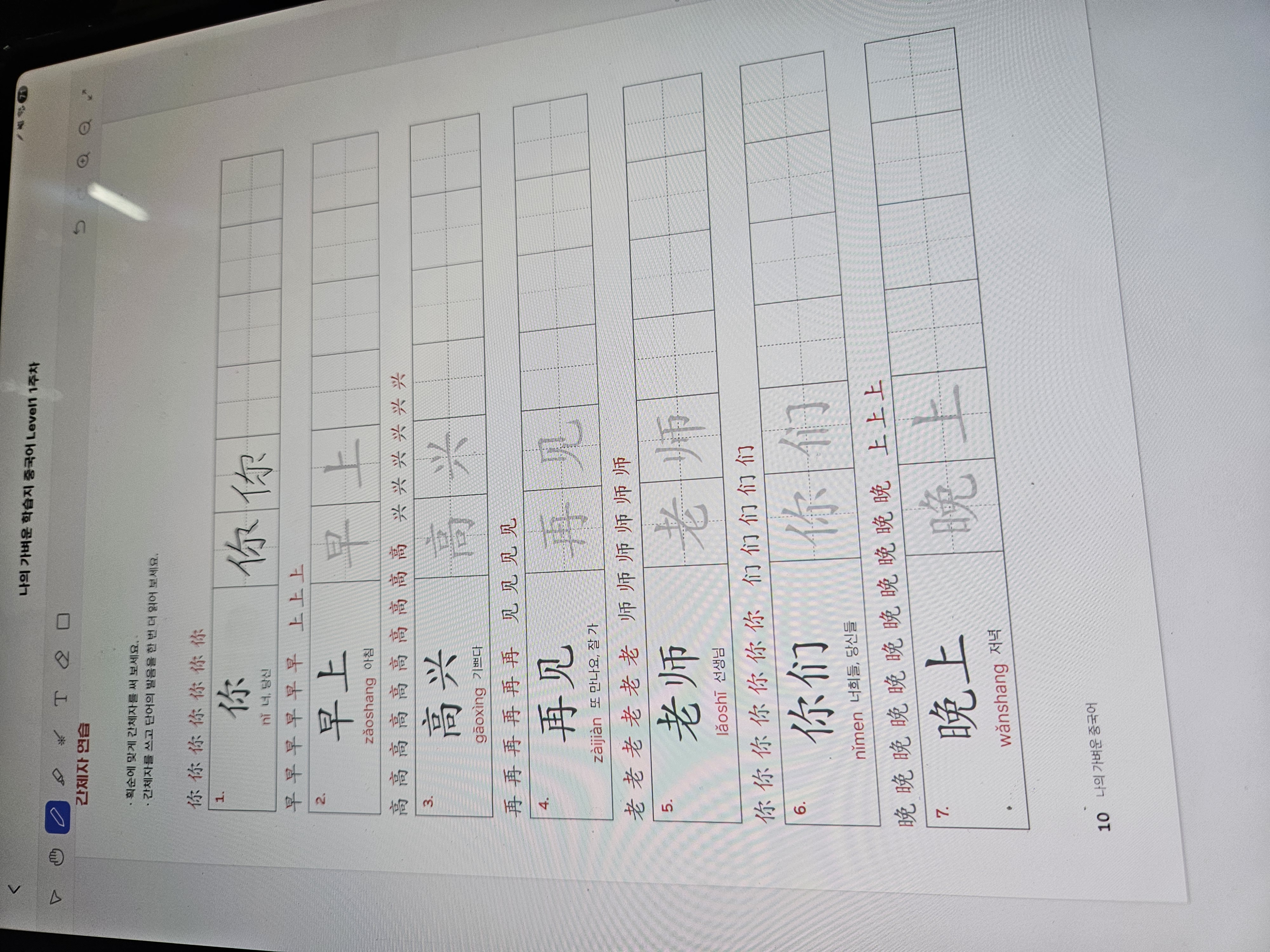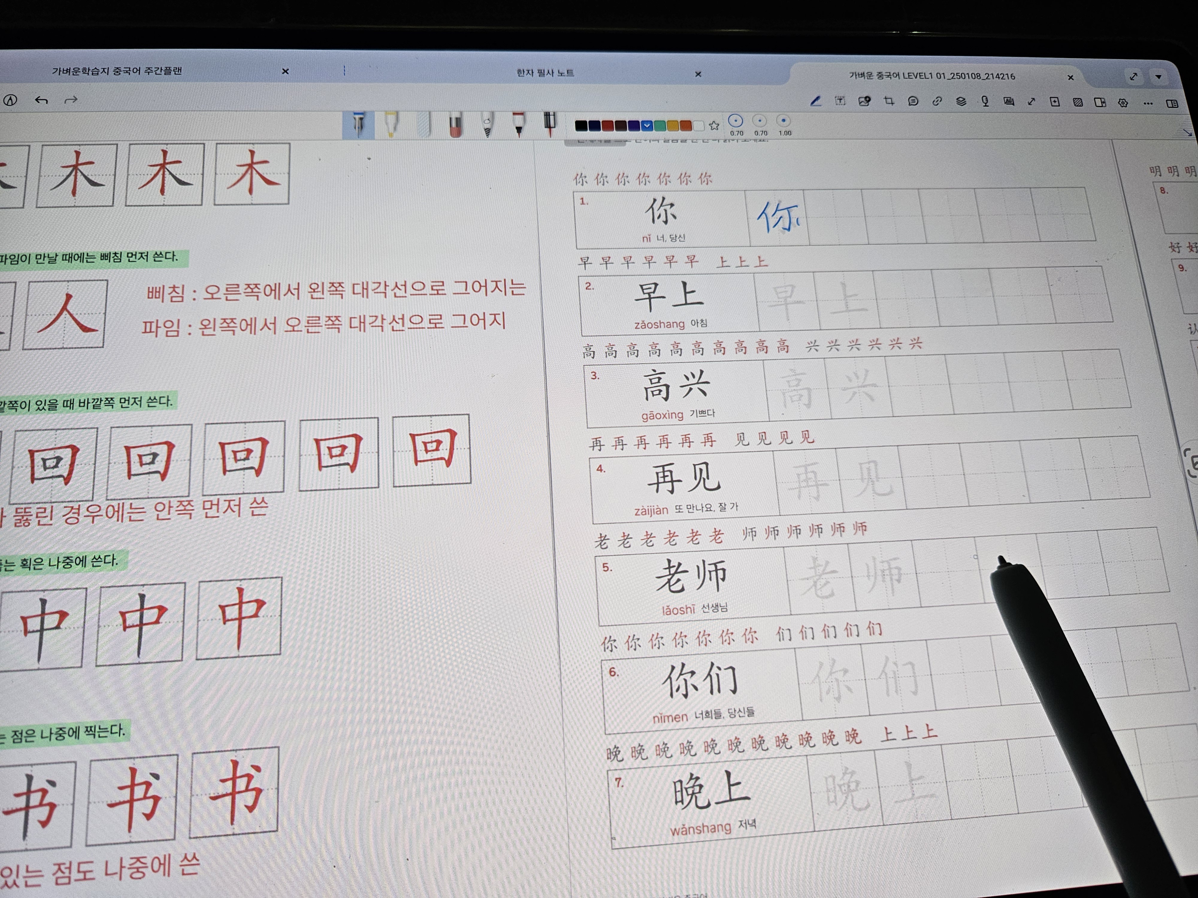 그것도 그냥 한자 혹은 단어만 되어 있는 게 아니라 병음 표기와 뜻, 한자 획순까지 한 번에 다 되어 있어서 새로운 한자나 단어가 나올 때마다 반복해서 써보고 익히면 된다.