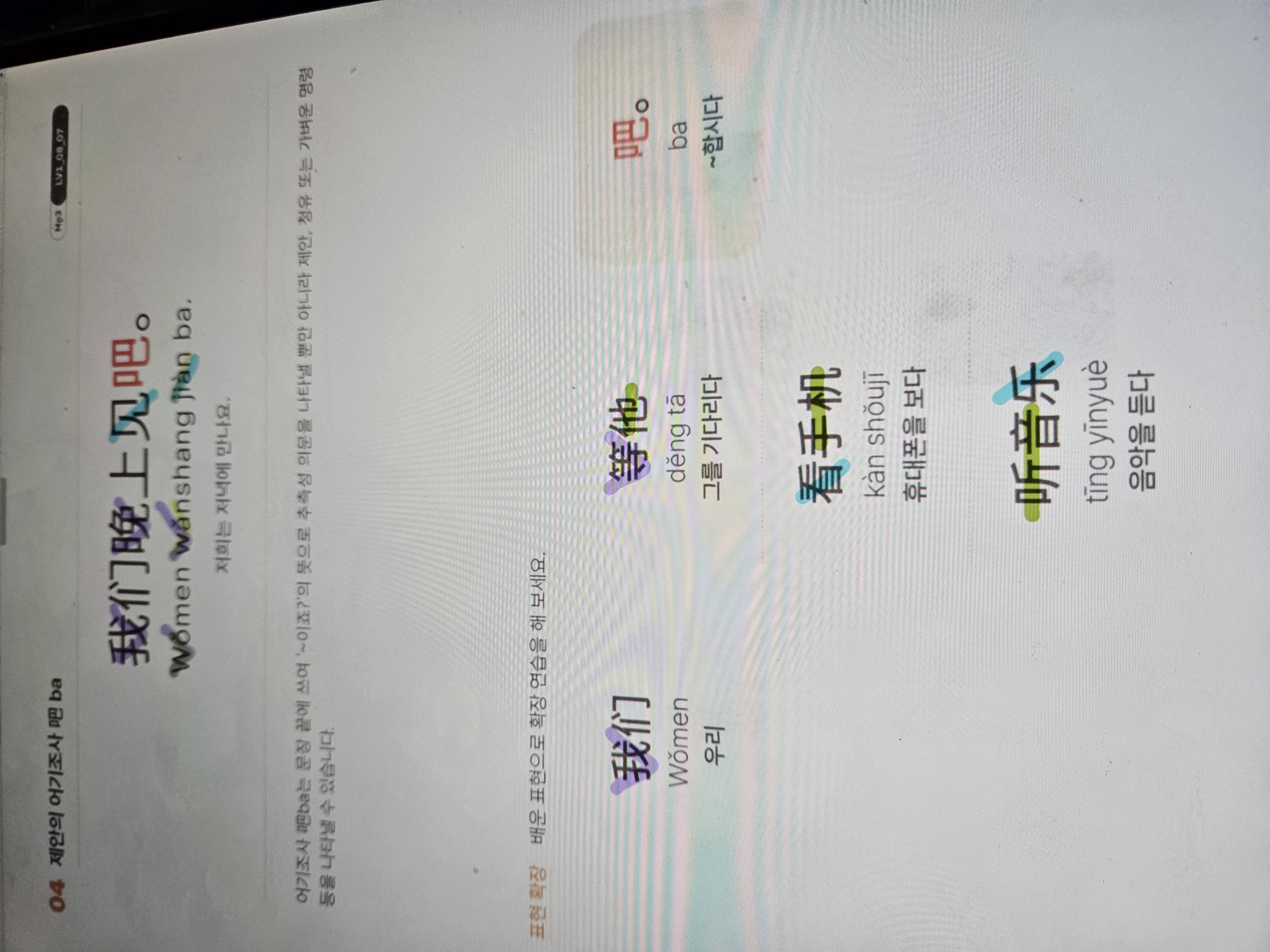 난 나만의 색상으로 표기를 해야 성조가 더 눈에 확 들어온다. 그래서 성조도 다시 한 번 눈에 익힐 겸 교재에도 색상 펜으로 성조 색칠공부 한다 ㅋㅋㅋ