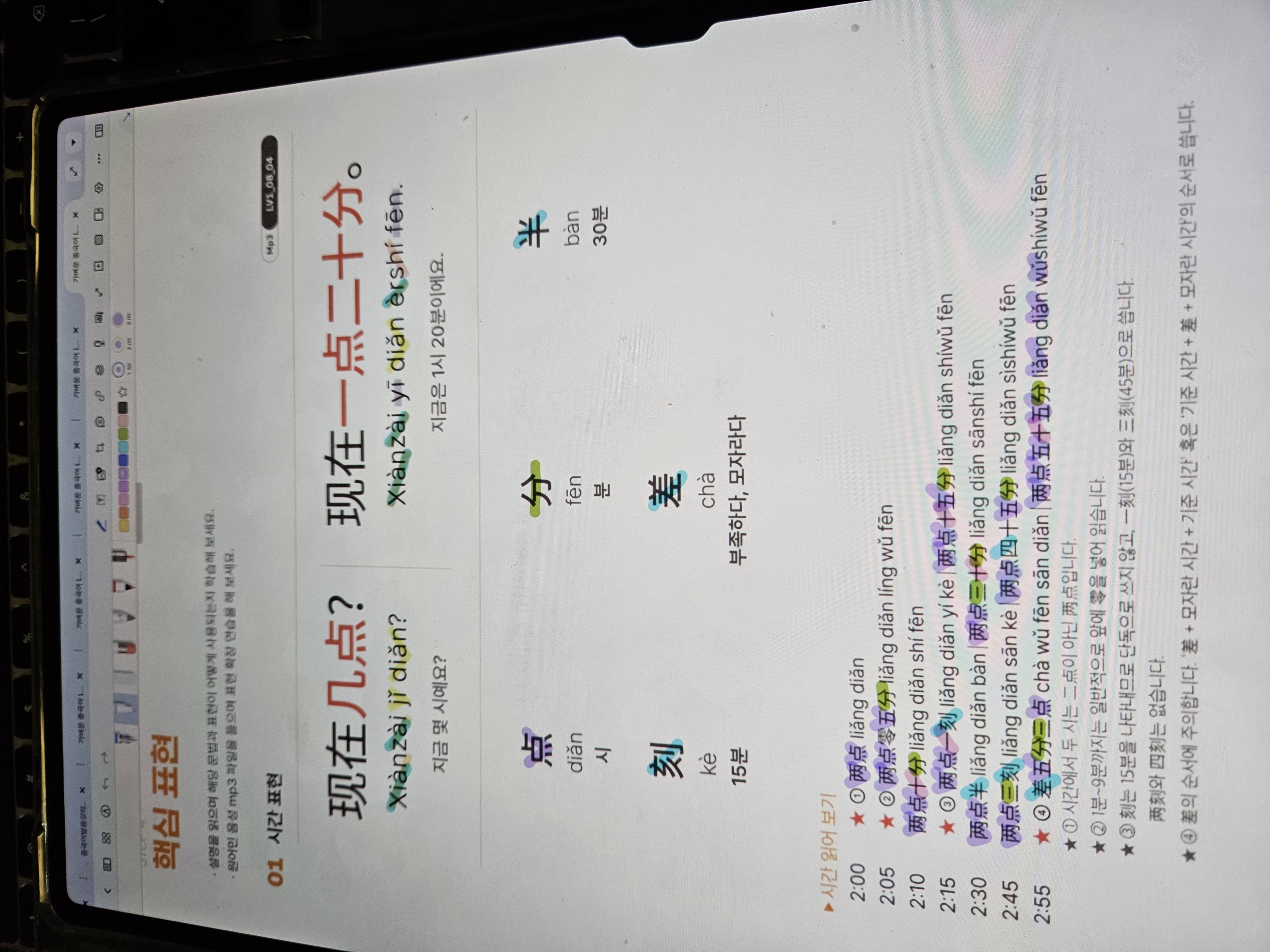 两点四十五分 liǎng diǎn sìshíwǔ fēn 리앙/량 디앤 쓰스우 펀 2시 45분