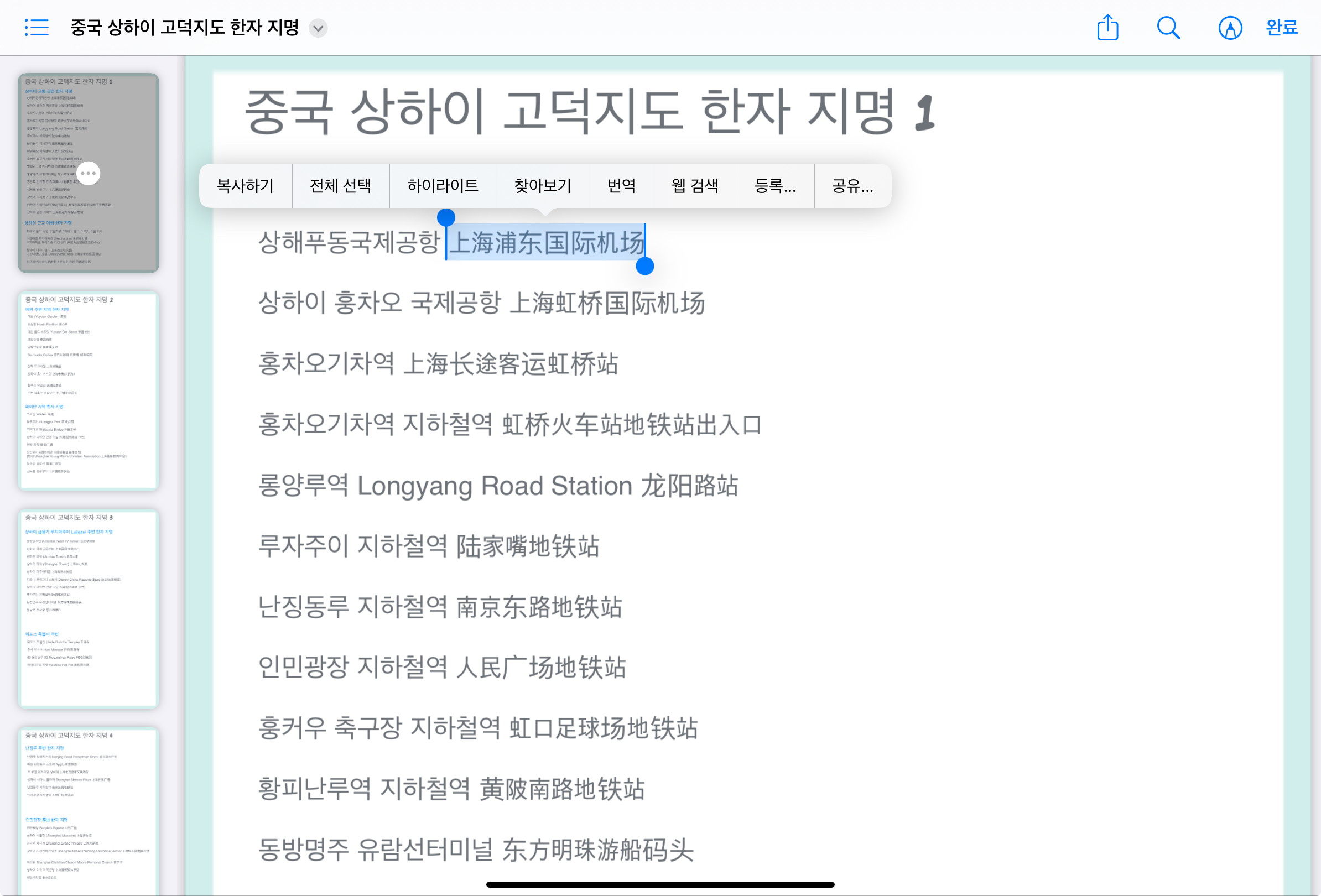 중국 상해 한자 지명을 웹사이트 페이지에서 바로 복사해서 쓰려면
