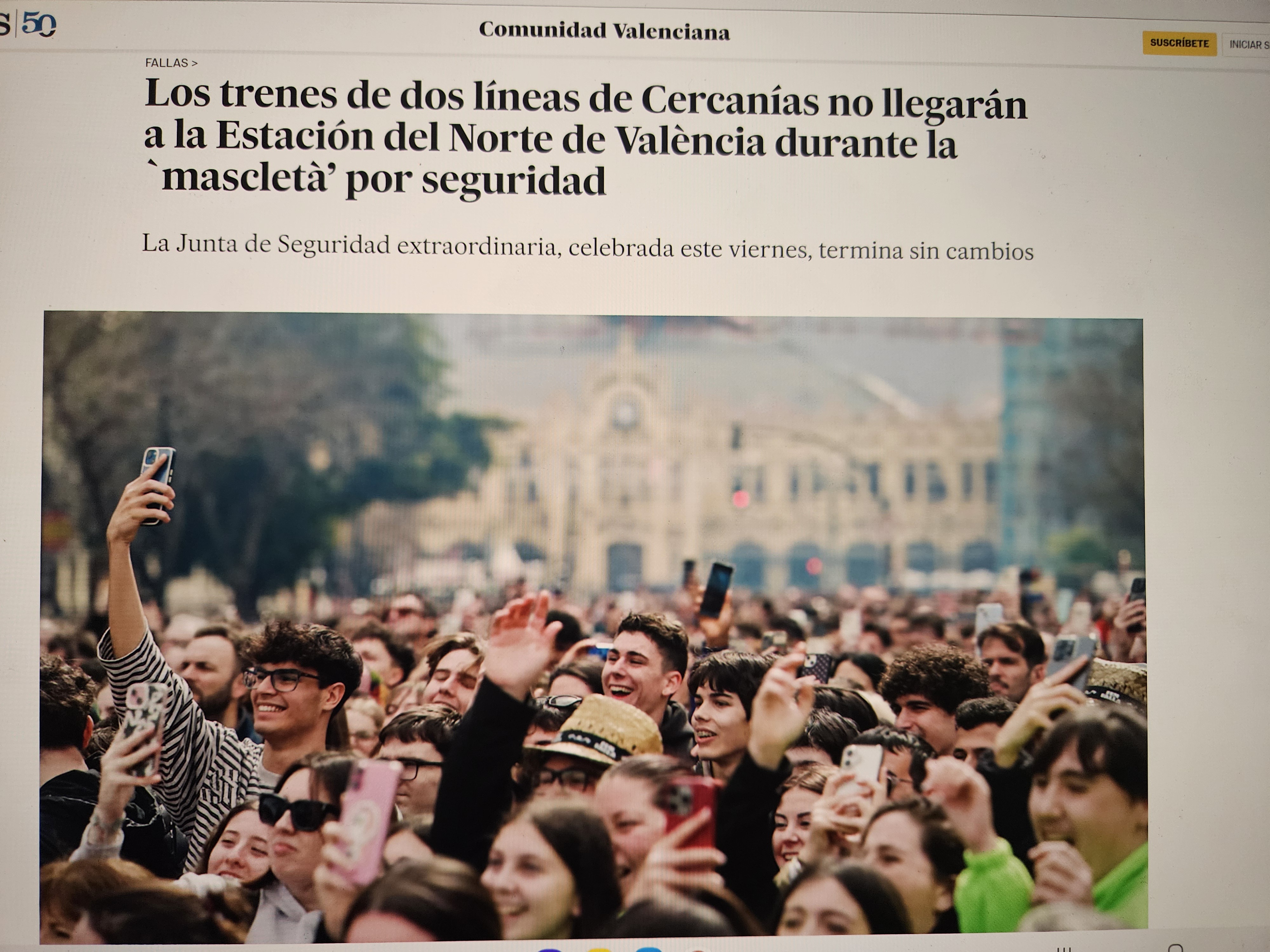 안전상의 이유로, '마스클레타' 기간 동안 두 노선의 통근 열차는 발렌시아 북역에 정차하지 않는다는 기사이다.