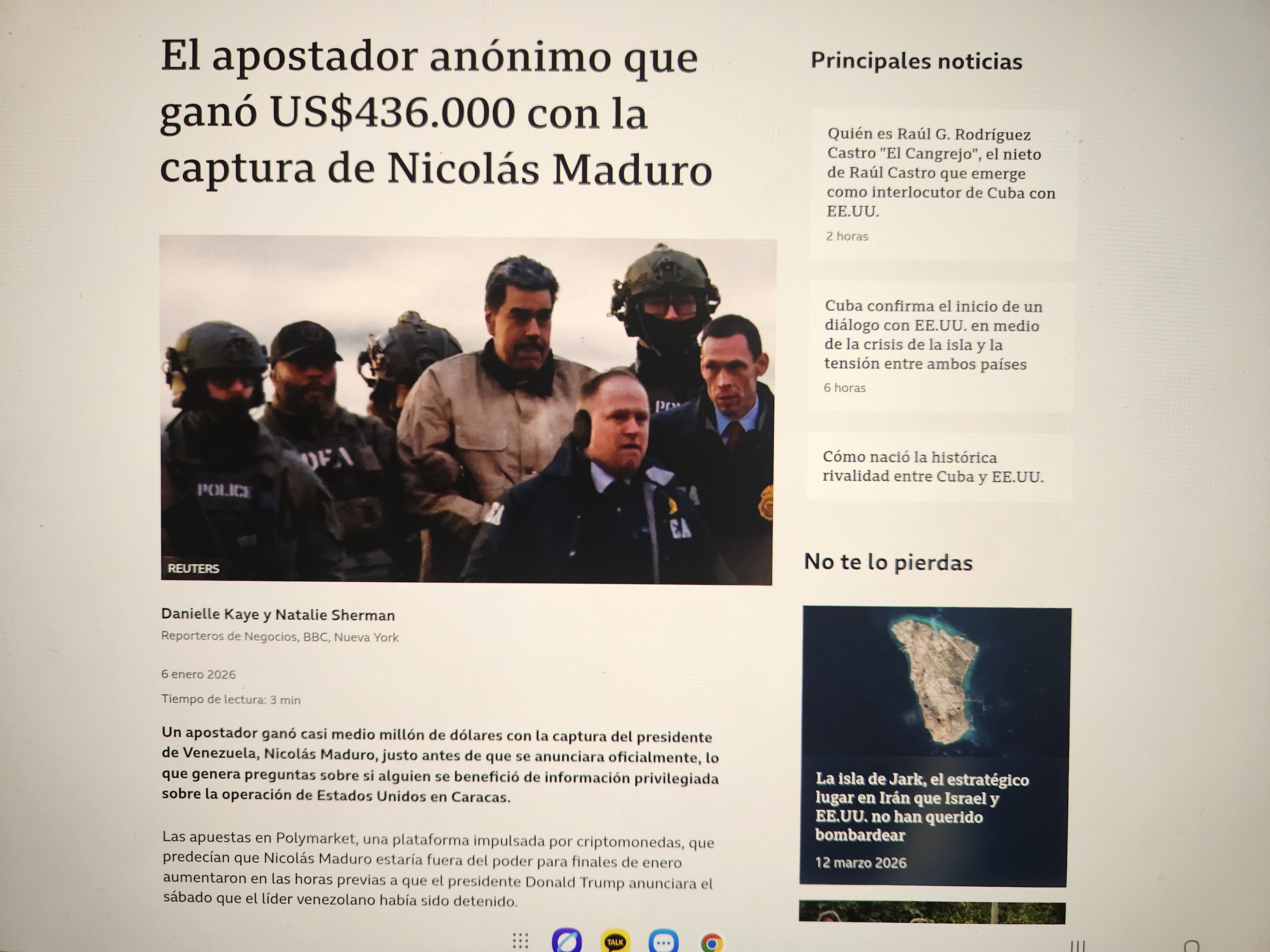 니콜라스 마두로 체포에 성공해 43만 6천 달러를 딴 익명의 도박꾼이 있는 건 아닌가 하는 추측 기사이다.
