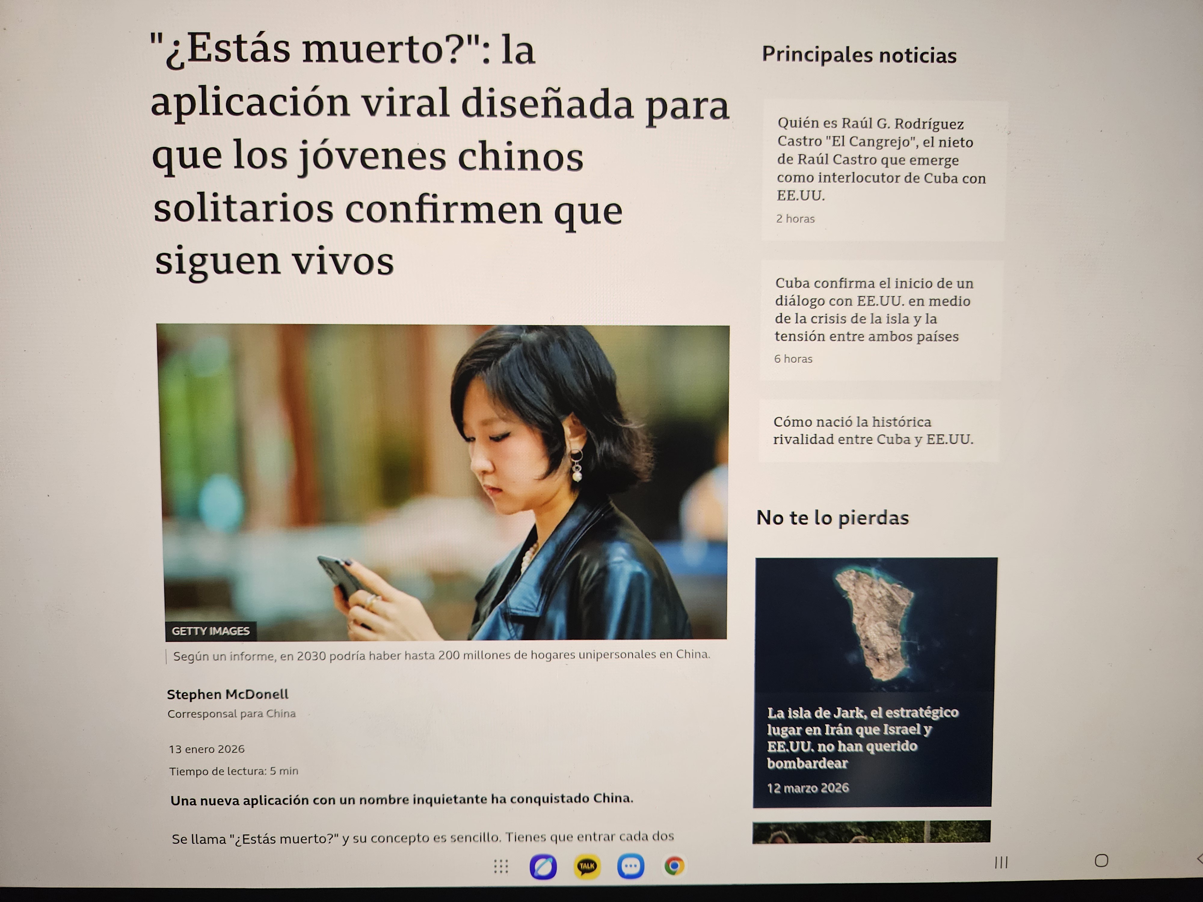 중국 젊은이들이 자신이 살아 있는지 확인하기 위해 만든 앱이 인기라는 기사이다.