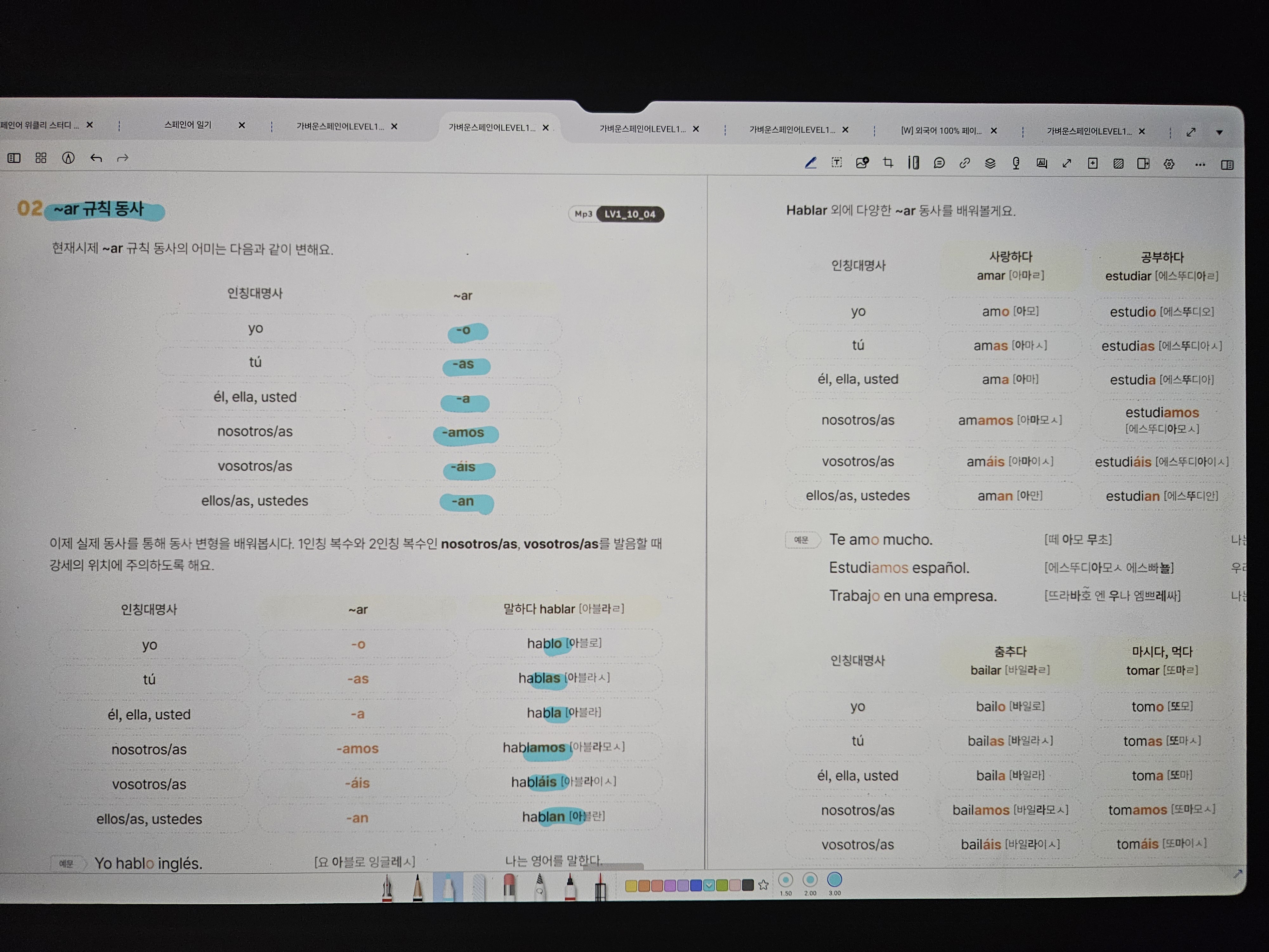 특히 -ar 동사만 따로 “자주 쓰는 동사 20~30개” 정리해둬도 스페인어 회화가 훨씬 빨리 는다고 하던데...