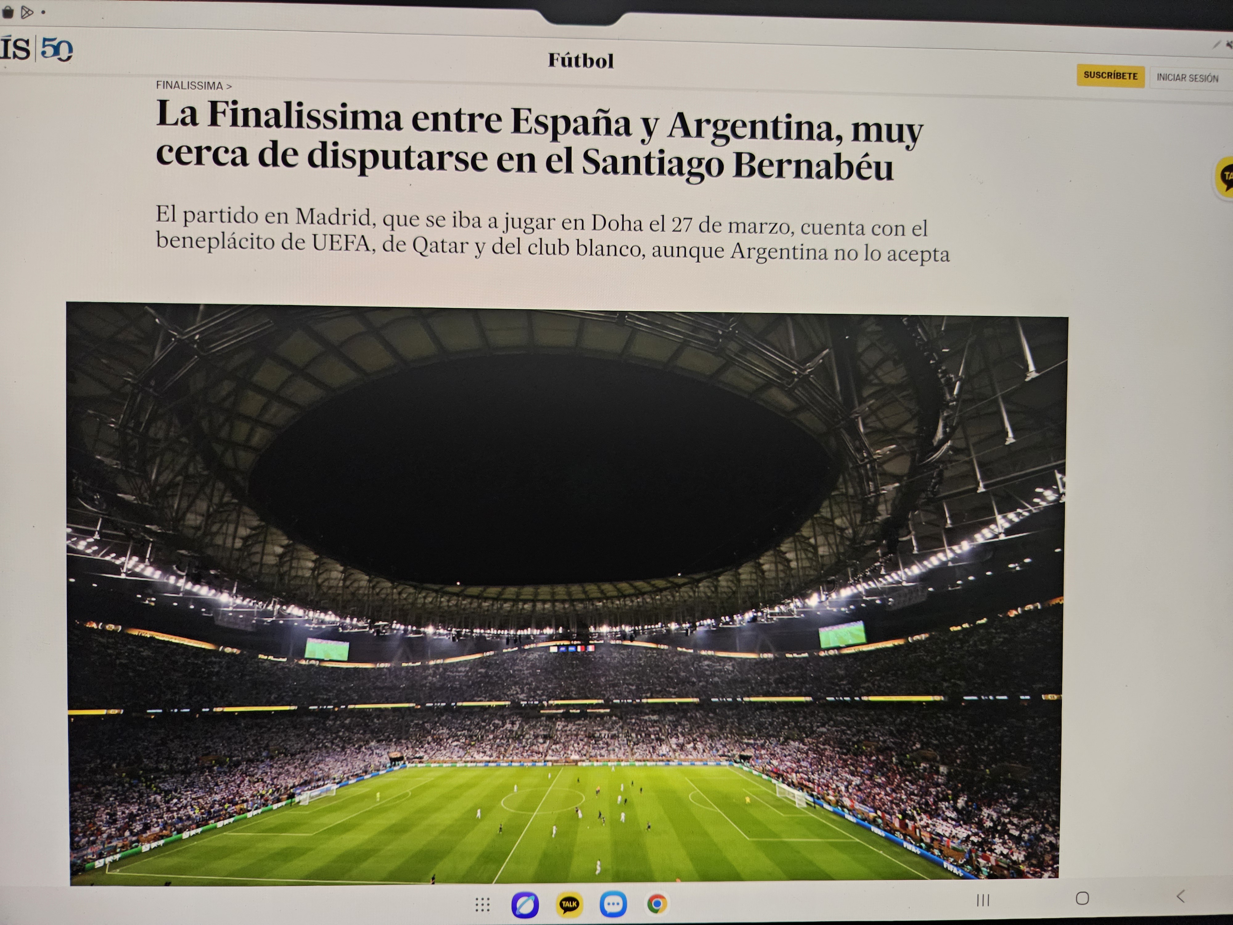원래 3월 27일 도하에서 열릴 예정이었던 이 경기는 UEFA, 카타르, 레알 마드리드의 승인을 받았지만 아르헨티나는 이를 받아들이지 않고 있다는 기사이다.
